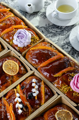 Assortment of Braided Sweet Bread, Yeast Loaf Brioche Bread