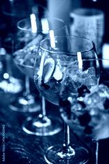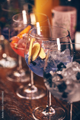 Elegant gin and tonic cocktails with blueberries