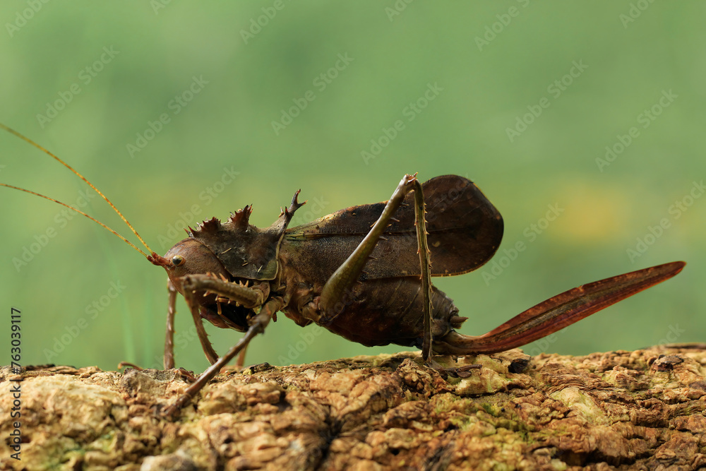 The Dragon Headed Katydid is long antenna grasshopper native to Indonesia and Malaysia.