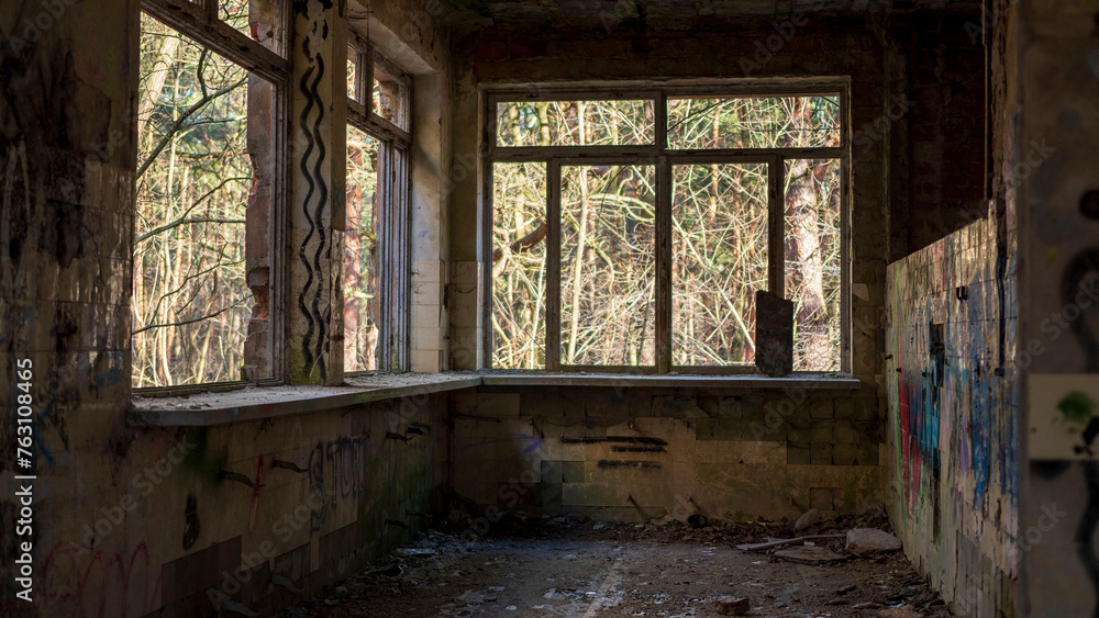 old window in abandoned building