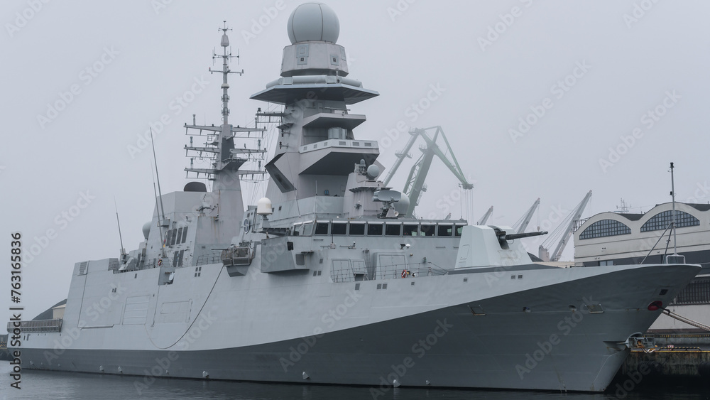 WARSHIP - Italian Navy guided missile frigate moored at the seaport wharf