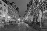 Night medieval street with traditional half-timbered houses, Marburg an der Lahn, Hesse, Germany