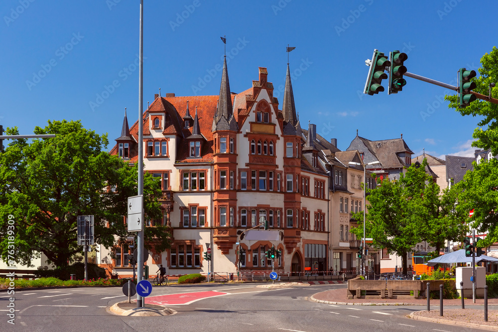Medieval street with traditional half-timbered houses, Marburg an der Lahn, Hesse, Germany
