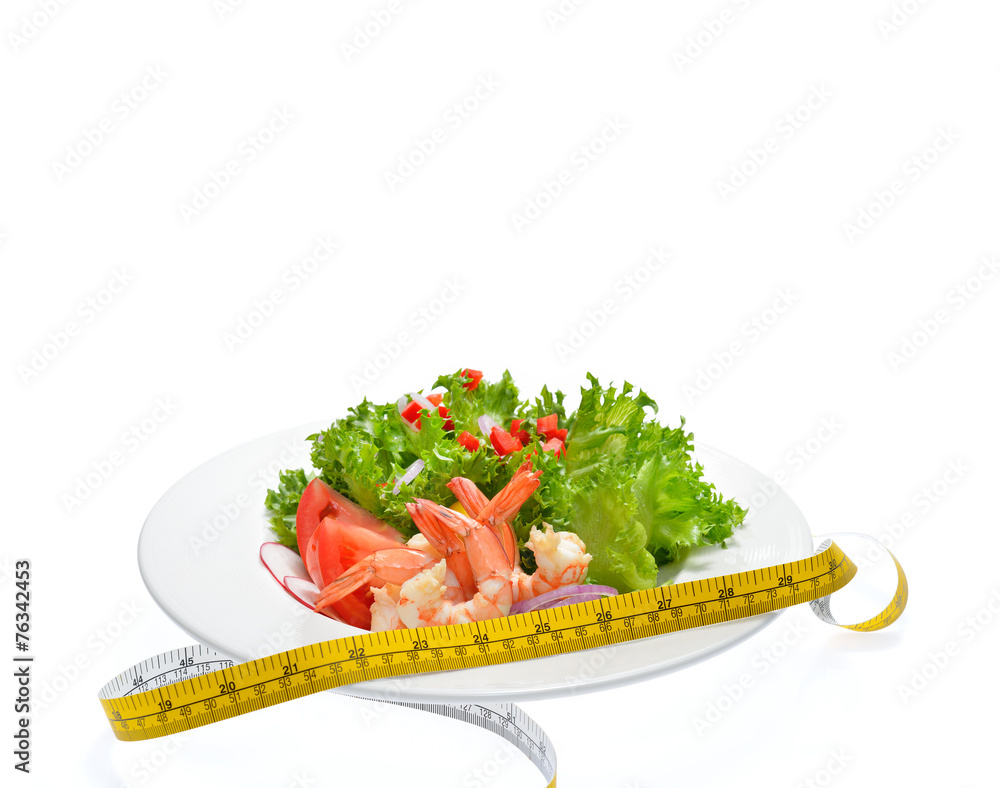 Fruit and vegetable salad on a plate isolated on white