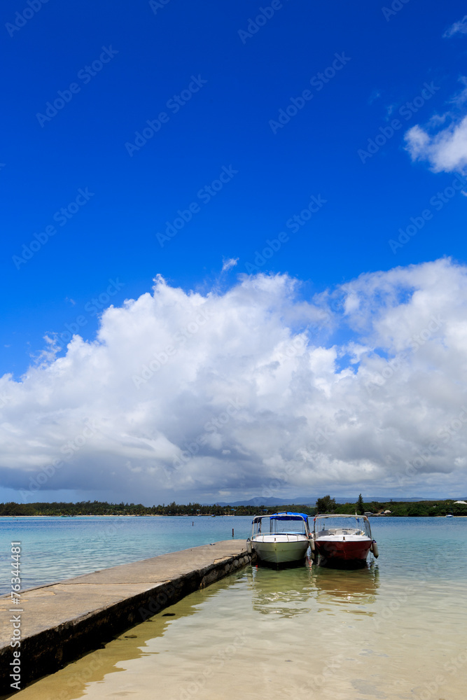 Ponton de la plage de blue bay - île maurice