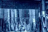 Traditional Rajasthan dress hanging at the street at a shop in Jodhpur, India.