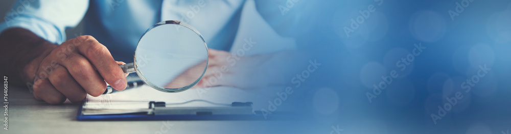 man hand document with magnifier