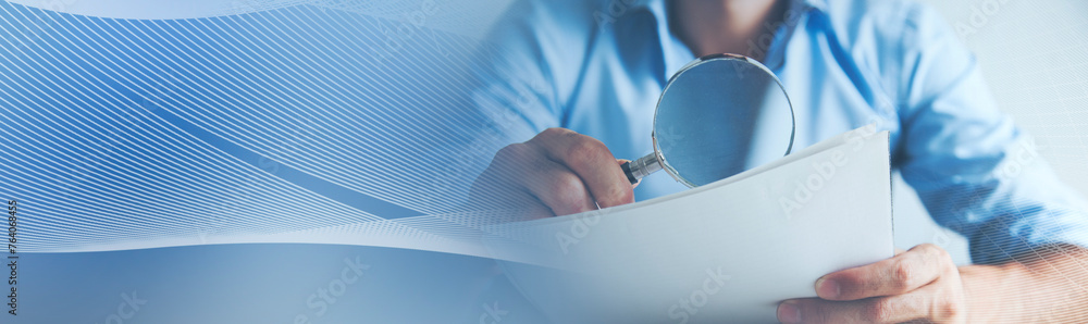 man hand document with magnifier