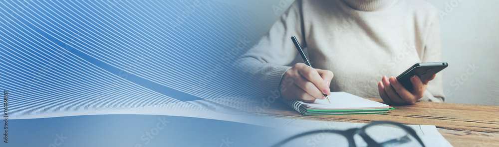 woman holding mobile smart phone and document