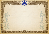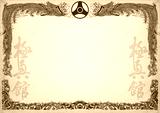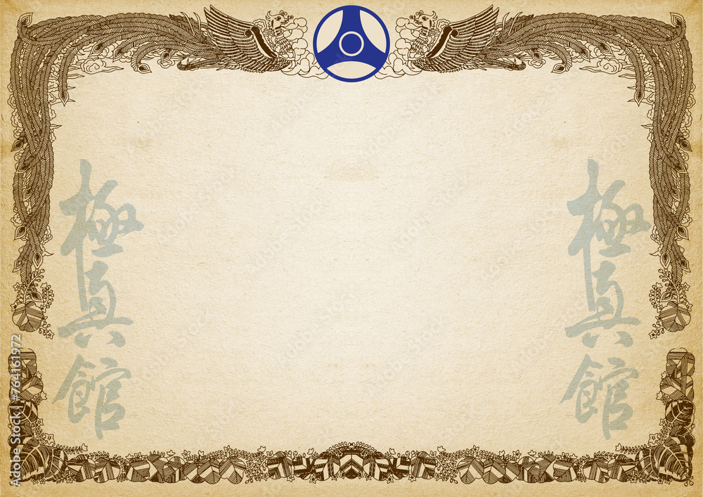Certificate, diplom karate KYOKUSHIN KAN. Old vintage paper texture background art design.
