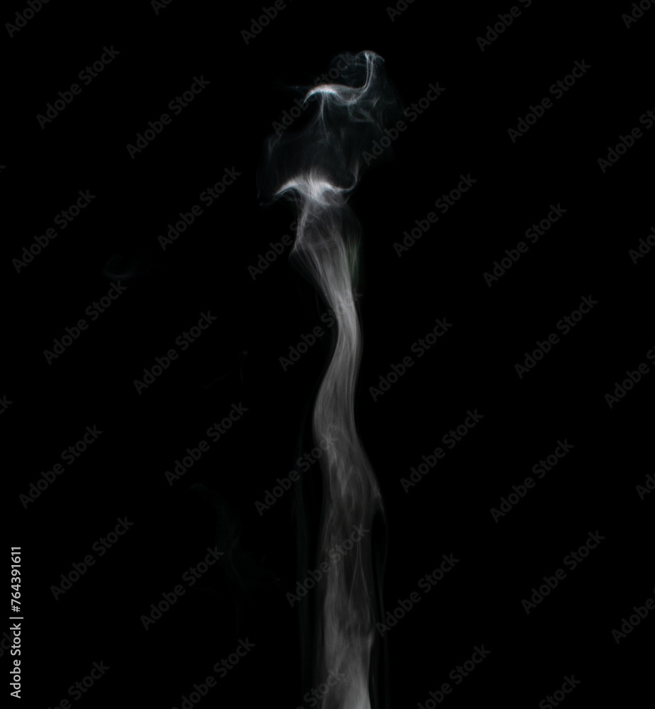 White puffs of smoke on a black background float mixing in bizarre chaotic patterns of thin threads