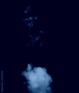 Chaotic mixing smoke creates abstract patterns on a black background