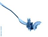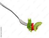 Mixed salad on fork isolated on white