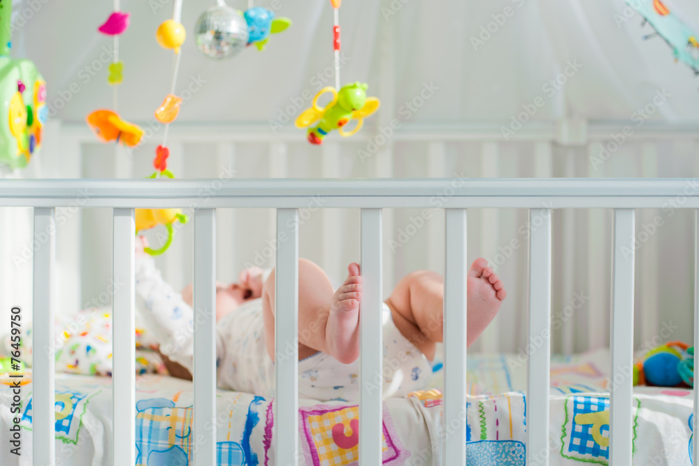 baby playing in a crib
