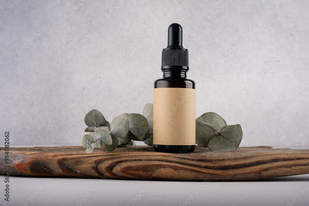 Minimalist and elegant brown dropper bottle of eucalyptus essential oil