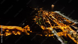 Aerial drone night shot of illuminated historic old city of Nafplio former capital of Greece, Argolida, Peloponnese
