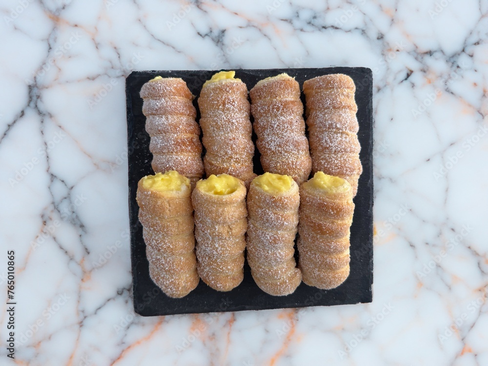 cream puff pastry cannoli - typical Italian festive dessert