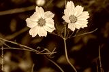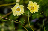 Grey-yellow cosmea in the garden in summer.