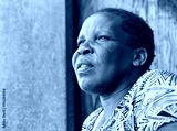 village african old woman portrait, at home, she is standing in front of the door