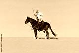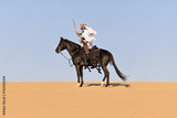 Arabian horseback archer riding his stallion and aiming at targets with his bow and arrow