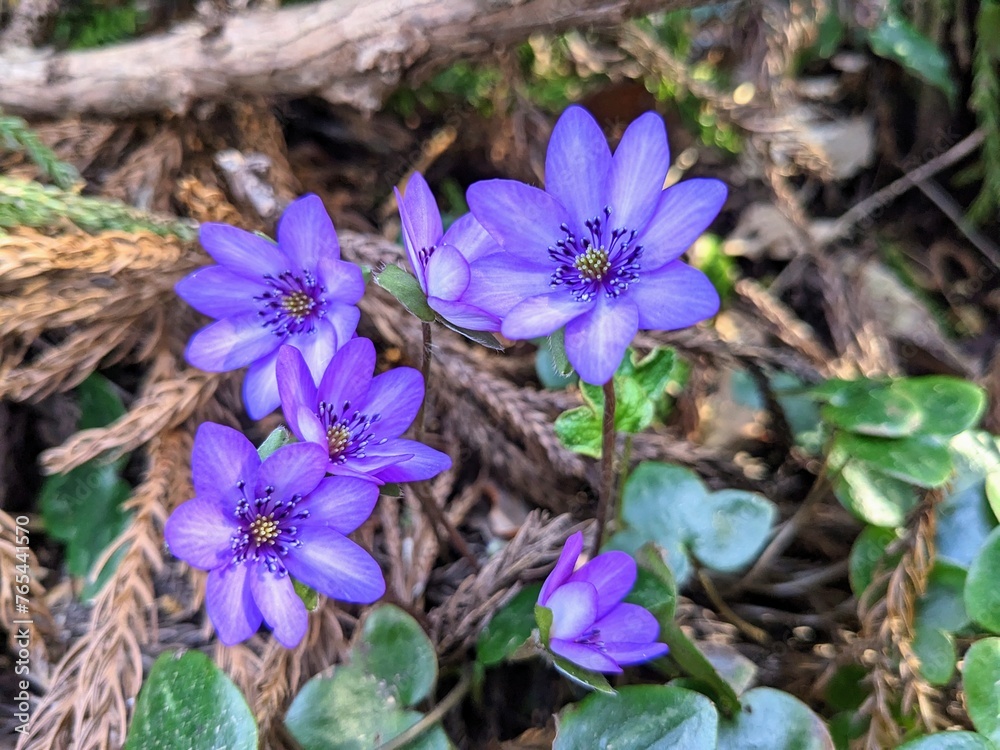 Adorable Kidneyworts blooming on Mt. Kakuda in Niigata city, Niigata Prefecture, Japan in March.