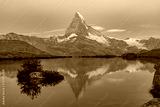 The Matterhorn reflected in Stellisee lake in the Swiss Alps