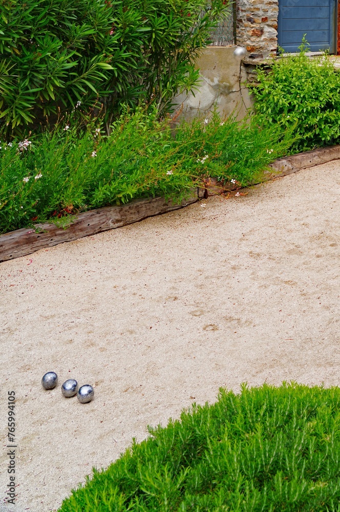 Playing a game of boules bocce ball (also called pétanque) in Provence, France