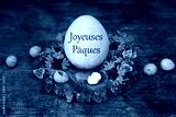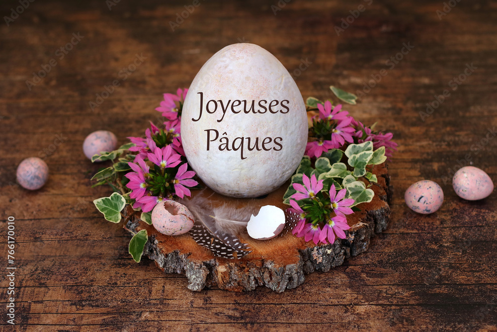 Carte de voeux Joyeuses Pâques. Décoration de Pâques avec un œuf de Pâques étiqueté.