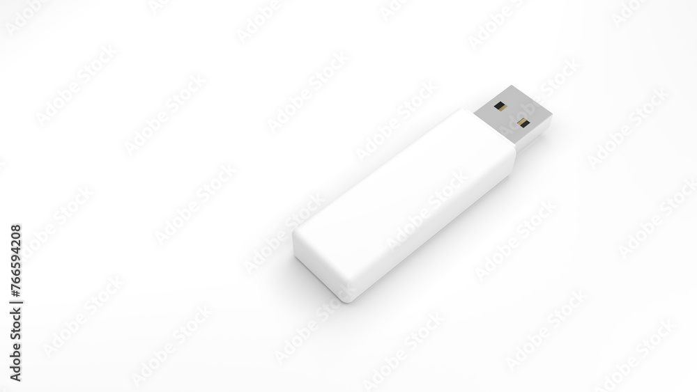 Pendrive. Isolated on white background. USB flash drive. Data storage device. Pen drive. 3d illustration.