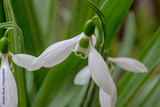 Białe wiosenne kwiaty - przebiśniegi (Galanthus nivalis). Wczesna wiosna w mieście.Piękne wiosenne drobne białe kwiaty na klombie w mieście.