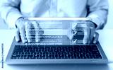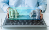 Businessperson online working on laptop with digital document form. Business quality of product or service and financial performance checklist. Project approval or questionaire survey concept.