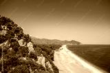 Beautiful landscape with beach, mountain and blue sky