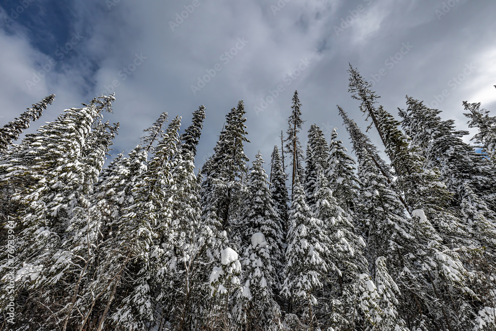 Pine and Spruce Trees covered in snow during a Rocky Mountain Winter