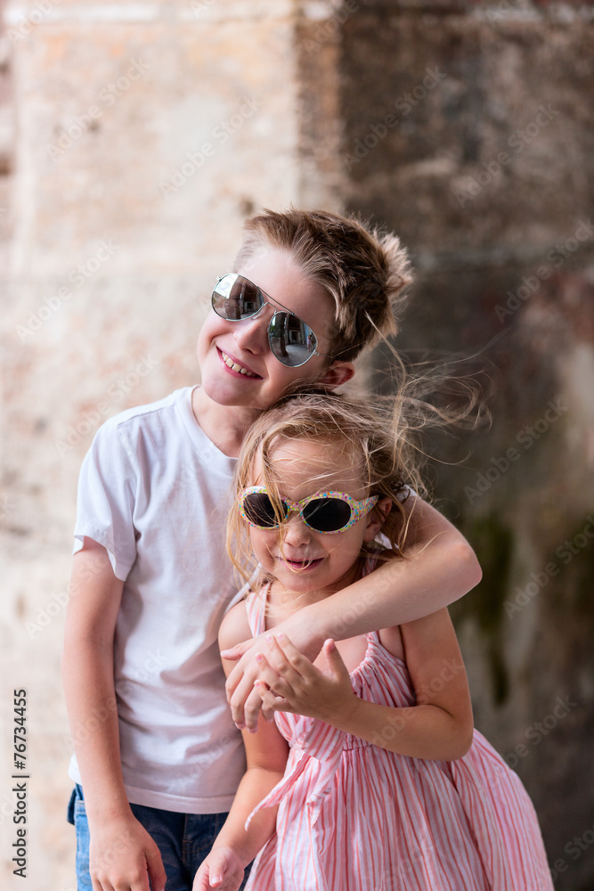 Kids outdoors in city