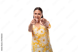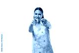 brunette young woman dressed in a summer yellow outfit charismatically shows facial expressions