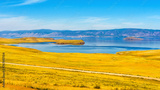 View from Olkhon island to Maloe More or Small Sea of lake Baikal and mainland near Yalga village. Picturesque summer landscape, beautiful natural background. Discovering distant places of Earth