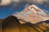 View of Kazbek from the surrounding towns. The huge peak bathed in the morning sun is impressive.
