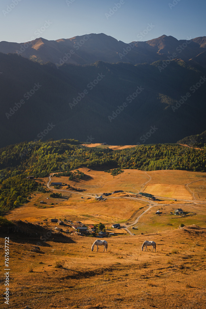 breathtaking views in Tusheti - in one of the most beautiful regions of Georgia. Autumn colors add charm and mood.
