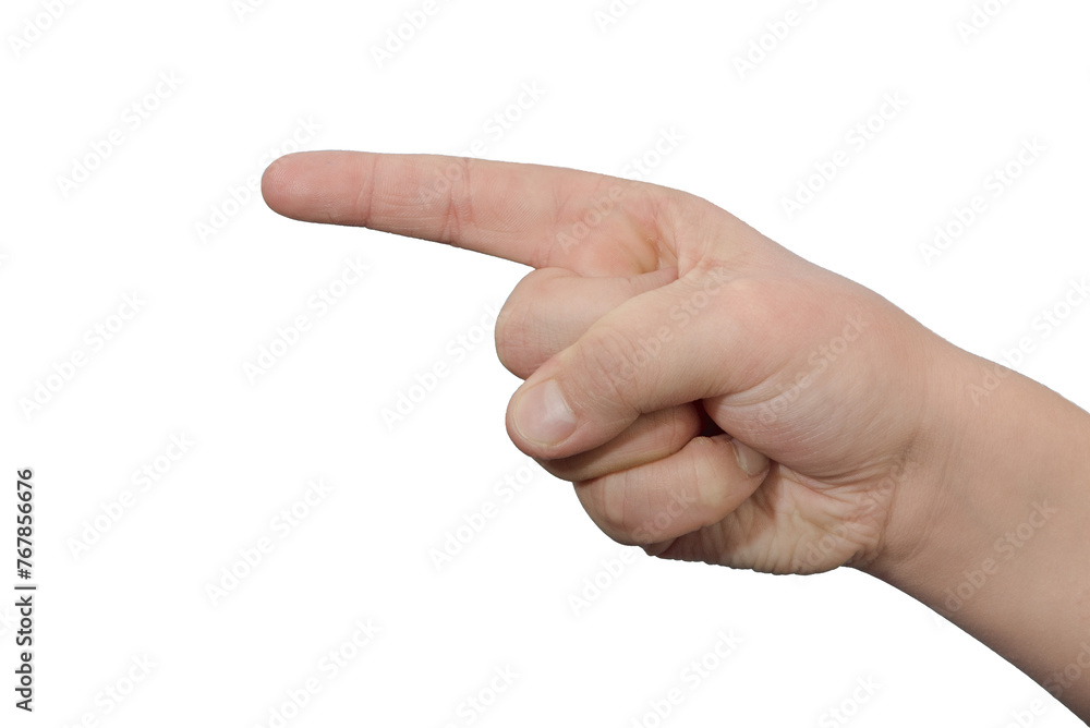 Teen boy index finger gesture to the left. PNG. Isolated. Close-up