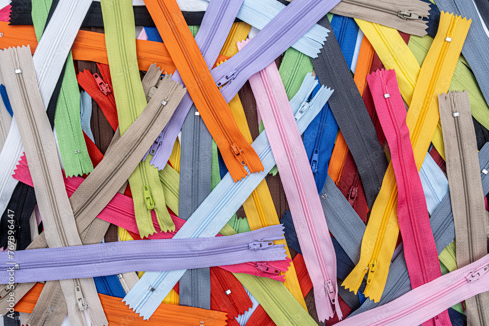 Multicolored Zippers or Zip Fasteners used for binding fabric or textile
