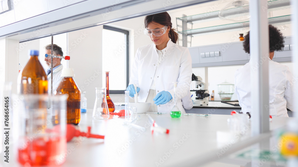Woman working in a lab as a part of the research team