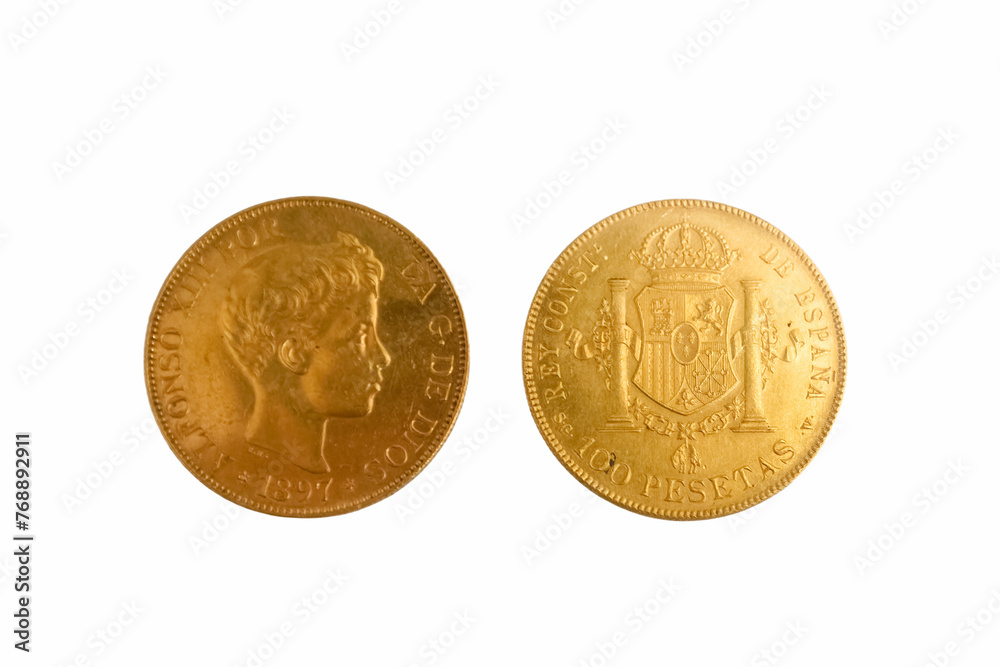 coin, gold, metal, means of payment, finance, round, spain, vint