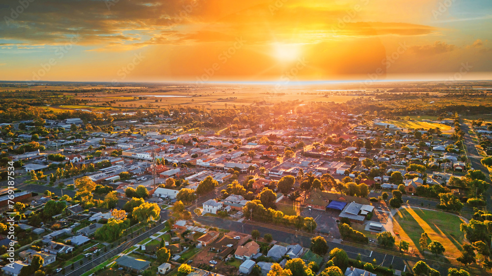Sunset in Kerang Victoria - Aerial view of the township of Kerang in Gannawarra Northern Victoria
