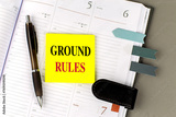 GROUND RULES text sticky on dairy on gray background