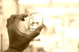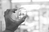 close up of hand holding magnifying glass