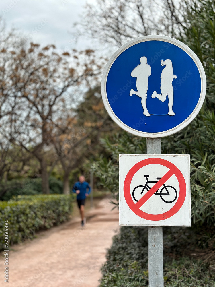 Closeup of traffic signs in Valencia, Spain