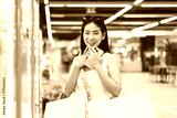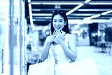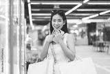 Young adult asian woman playing crane game indoors department store.