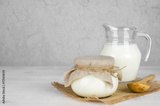 Milk on wooden table on abstract vintage background