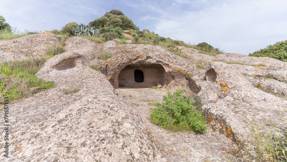 domus de janas and necropolis of santu pedru ancient nuragic tombs in alghero north sardinia.