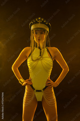 Hot dancer woman. Portrait of sexy TDJ girl at the night club party. Mixtape or book covers - download high resolution picture for your song or music clip. Black friday template for sex shop.